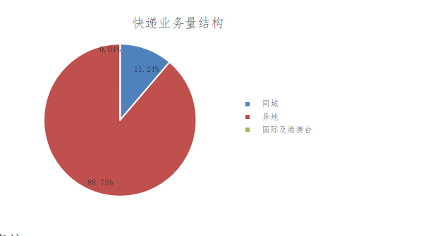 1-7月,同城、异地、国际及港澳台快递业务量分别占全部快递业务量的11.24%、88.75%和0.01%。